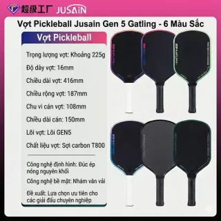 Vợt Pickleball Jusain Gatling JSRG-51X204 Gen 5 Black Honeycomb Carbon T800 16mm - Emerald Green