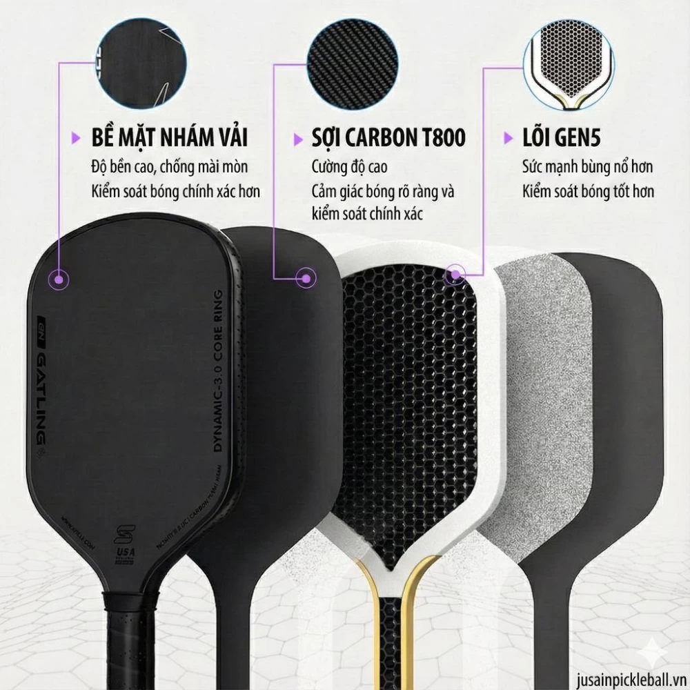 Vợt Pickleball Jusain Gatling JSRG-51X205 Gen 5 Black Honeycomb Carbon T800 16mm - Aurora Blue