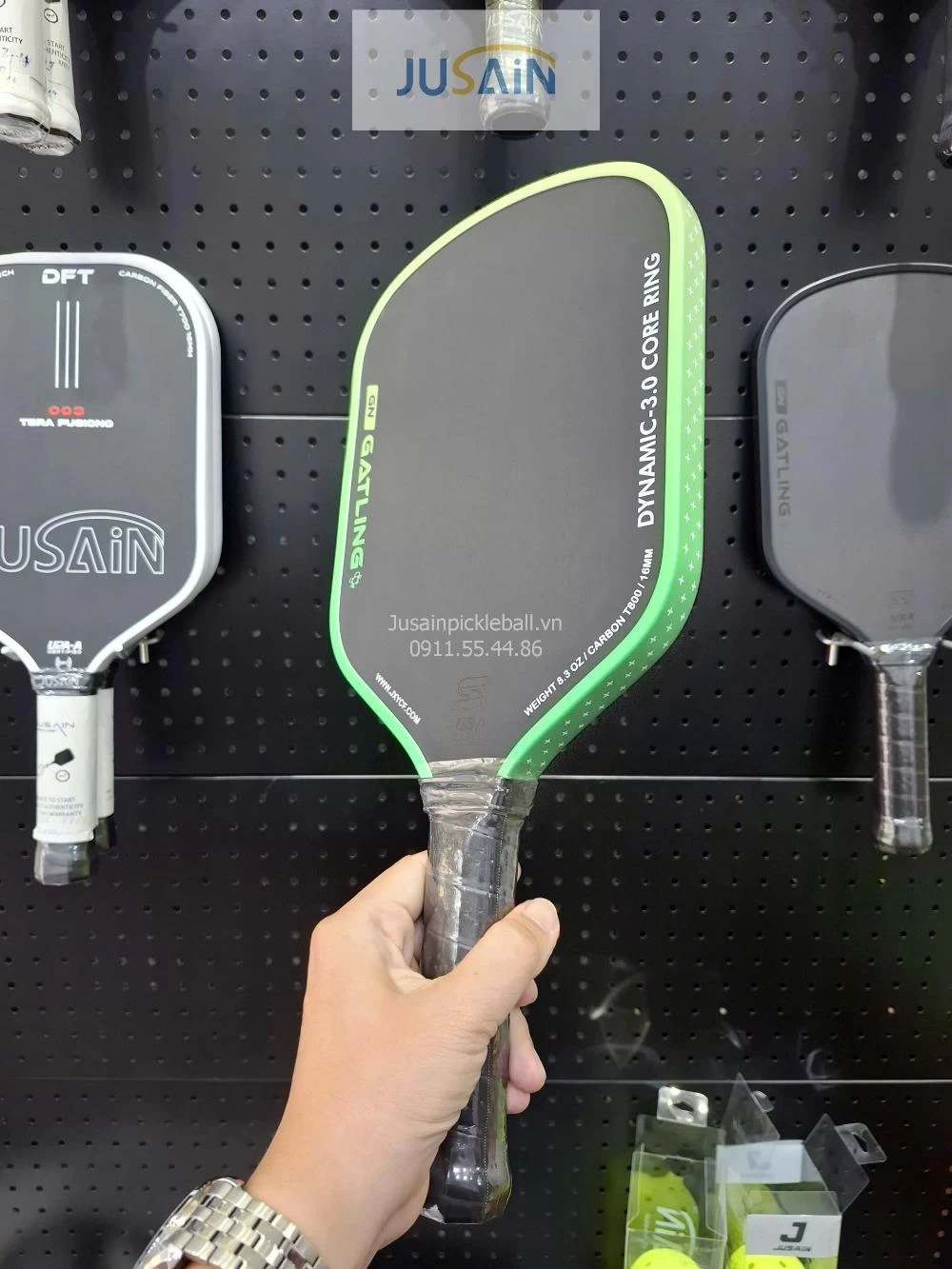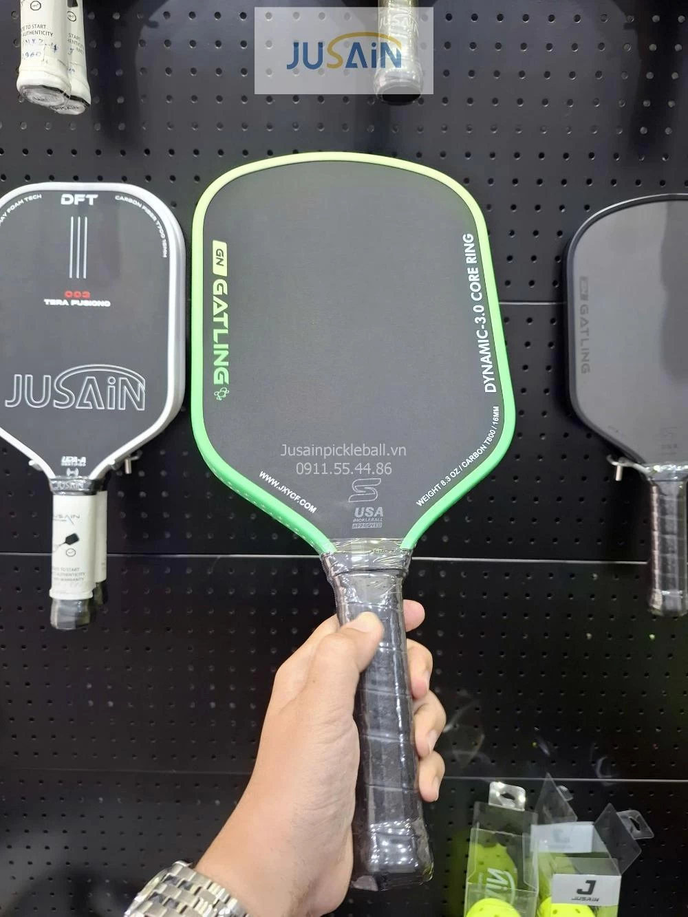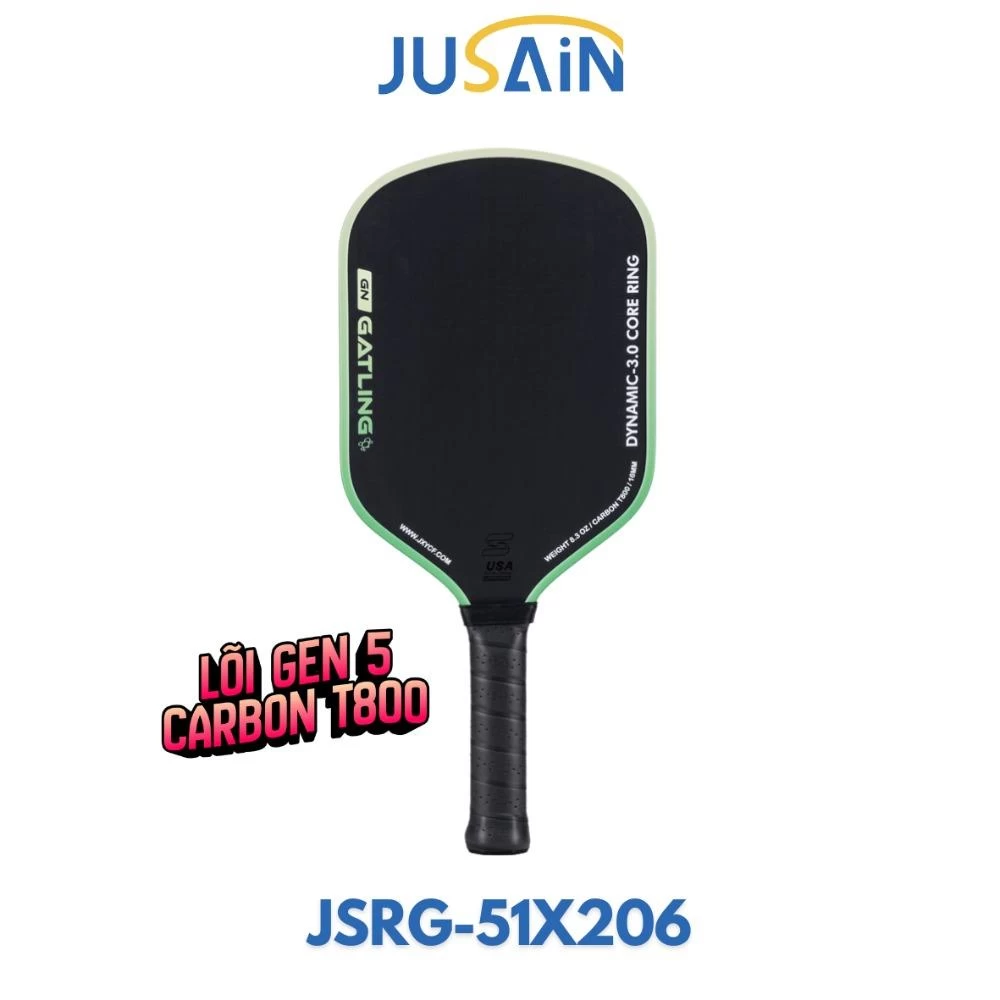 Vợt Pickleball Jusain Gatling JSRG-51X206 Gen 5 Black Honeycomb Carbon T800 16mm - Mint Green